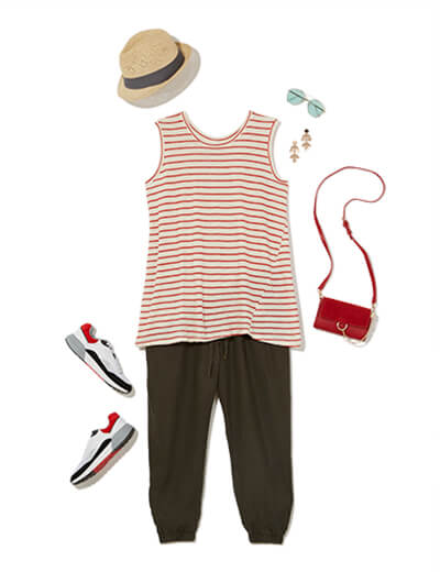 Wish sweatpants were chic? Try joggers! They’re an unexpected silhouette that pairs perfectly with easy tanks, sneakers, and travel days.