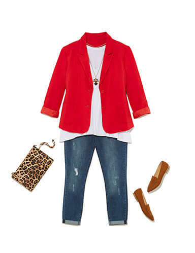 Show off your wild side with a vibrant red blazer and leopard print clutch. Both are timeless, yet eye-catching.
