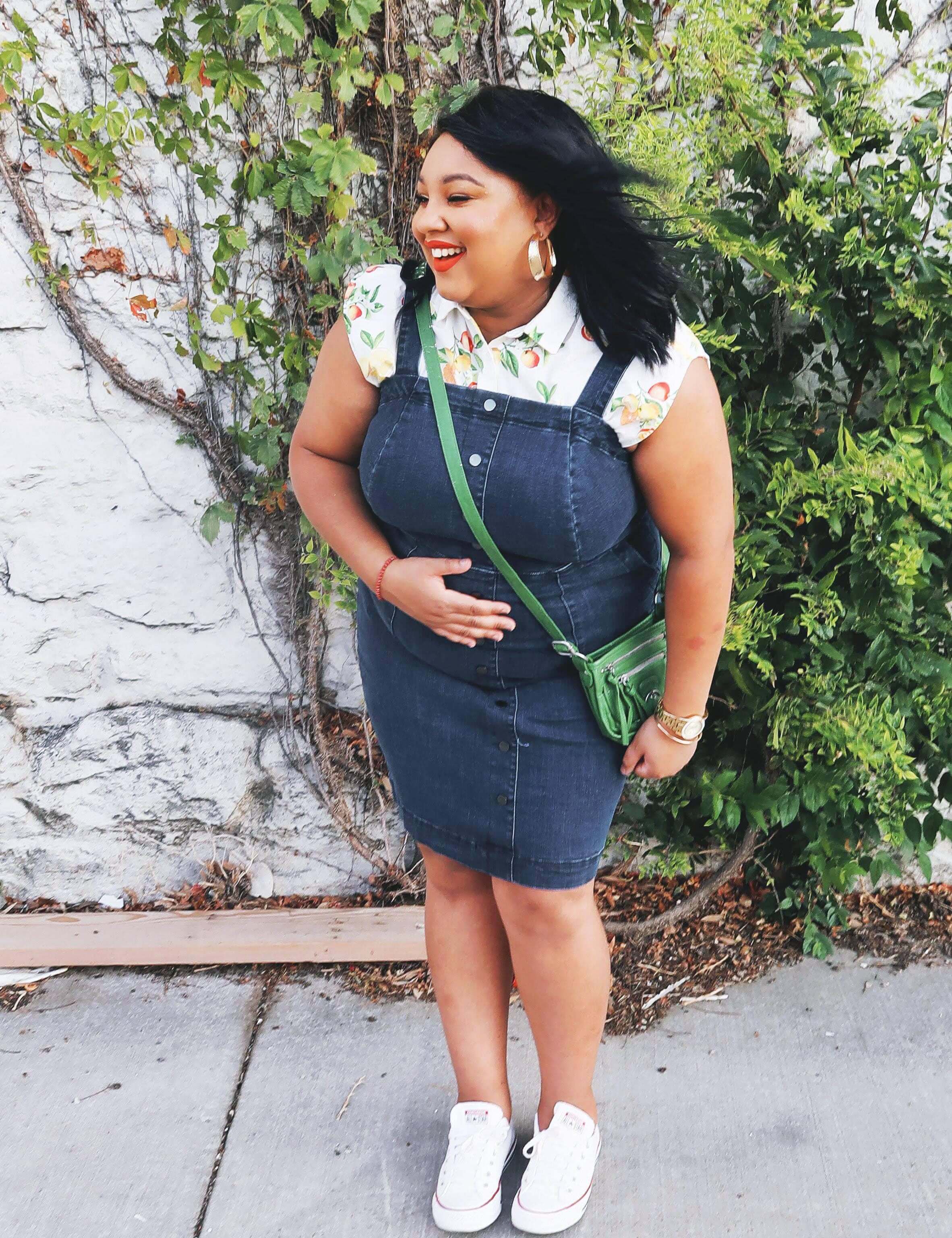Dia Stylist Luz shows us that a casual-vibe denim dress is a fail-proof pairing for sneakers.