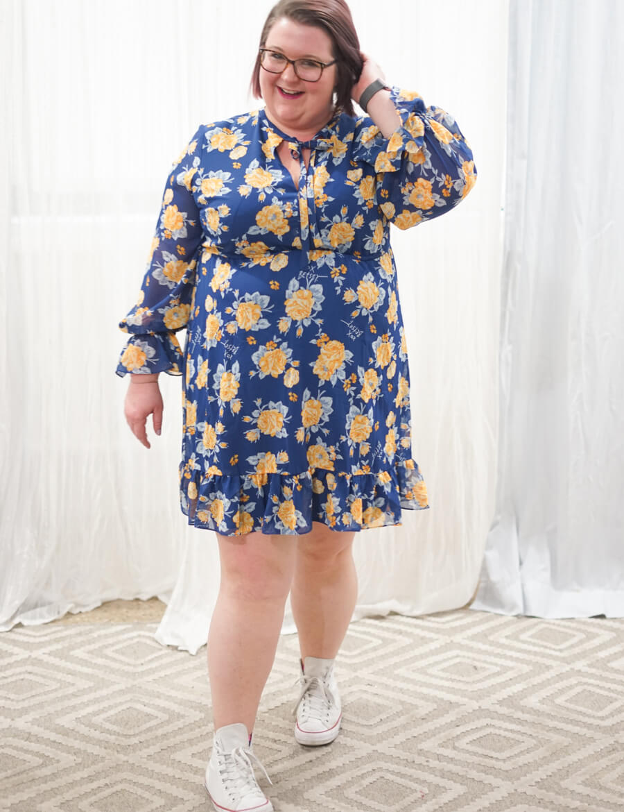 Marge, our Culture & Onboarding Manager, grounds the playfulness of a floral dress with her trusted high-tops.