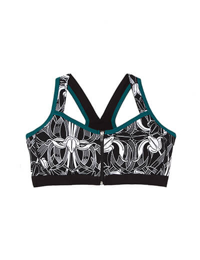 A printed sports bra can really make your workout look come to life. This bra not only features a playful print but also contrasting trim and a zipper!