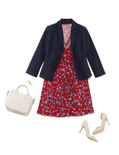 Dress up your favorite summer dress with a sharp blazer and statement necklace.