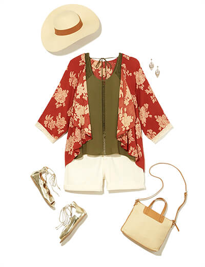 In the summer, add this layer to seasonal essentials, like easy tees and denim cut-offs—then finish the look with strappy sandals. For fall, swap out shorts for pants and keep your accessories simple.