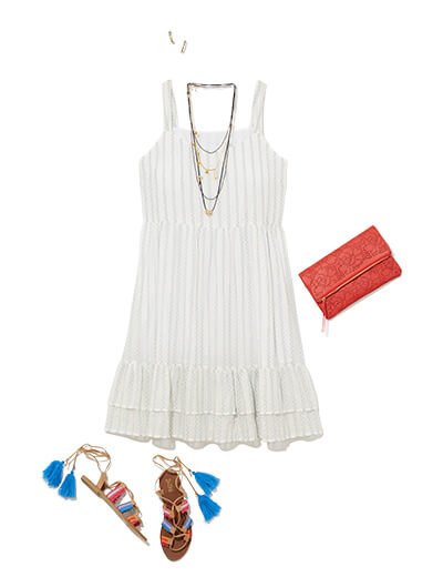 In the summer, make the dress pop with boldly bright sandals and accessories. For fall, tie a chambray button-down to layer on top and add booties.