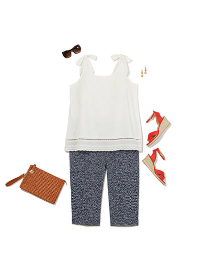 In the summer, pair this style with printed capris and espadrilles, the season’s favorite shoes. For fall, layer on a light jacket and add dimension with a floral maxi skirt.