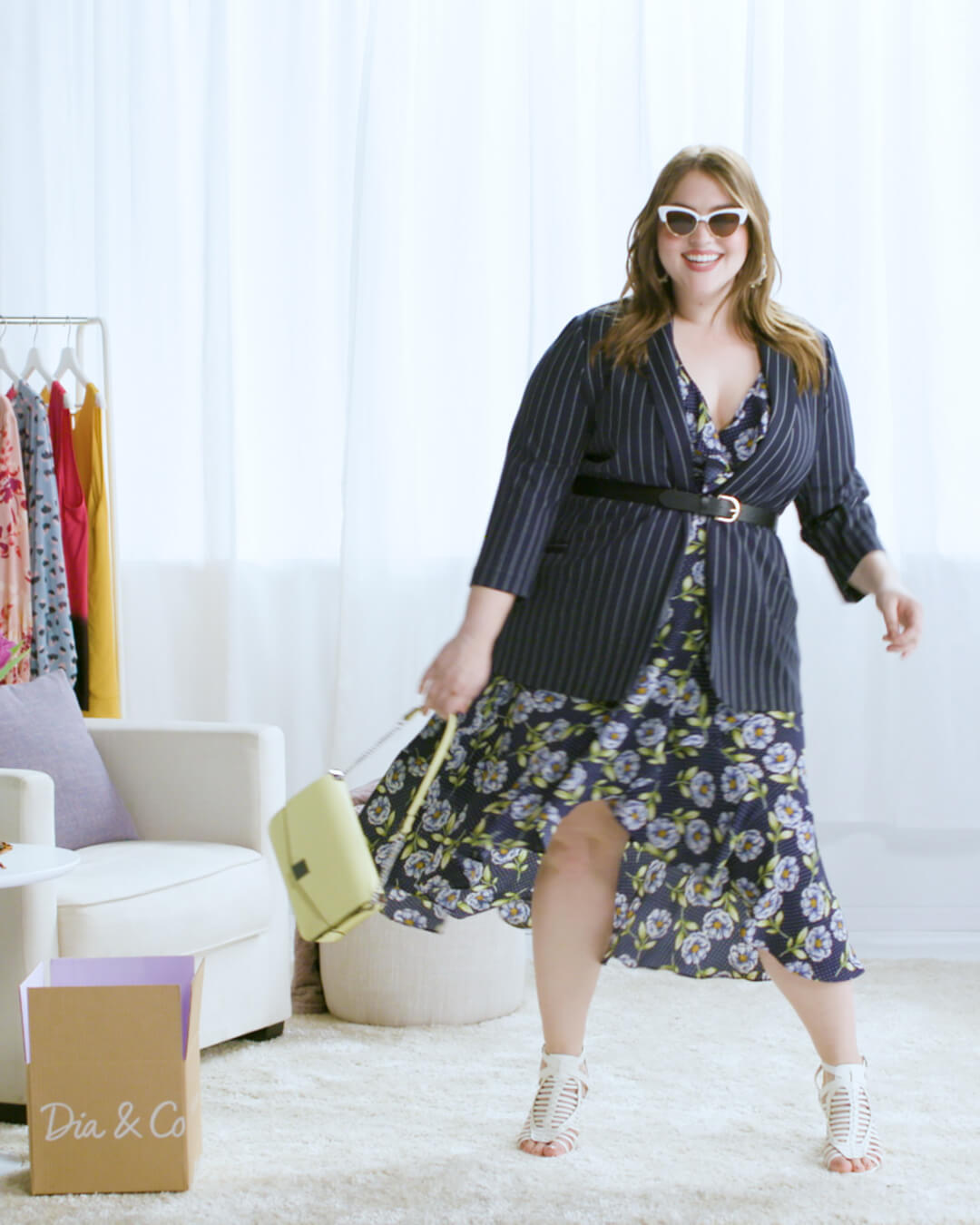 Go for Strictly Business by layering the blazer over a dress in a complementary print. Cinch a belt at the waist for a little extra tailoring. Finally, keep things fun by accessorizing with bright pops of color.