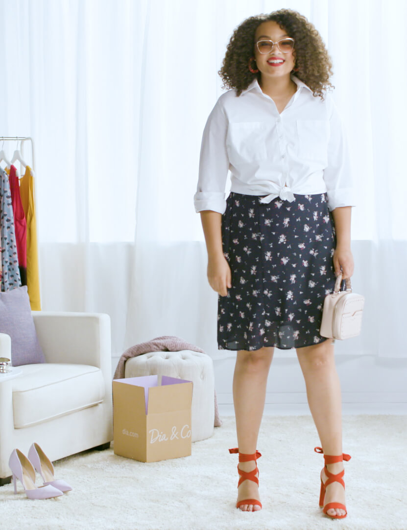 Running the show at a meeting this week? It’s time to go the traditional route with your classic button-up. Pair it with a sleek skirt and sharp heels—then tie the top at the waist to give it a little something extra. Finally, let your accessories pull in pops of color.