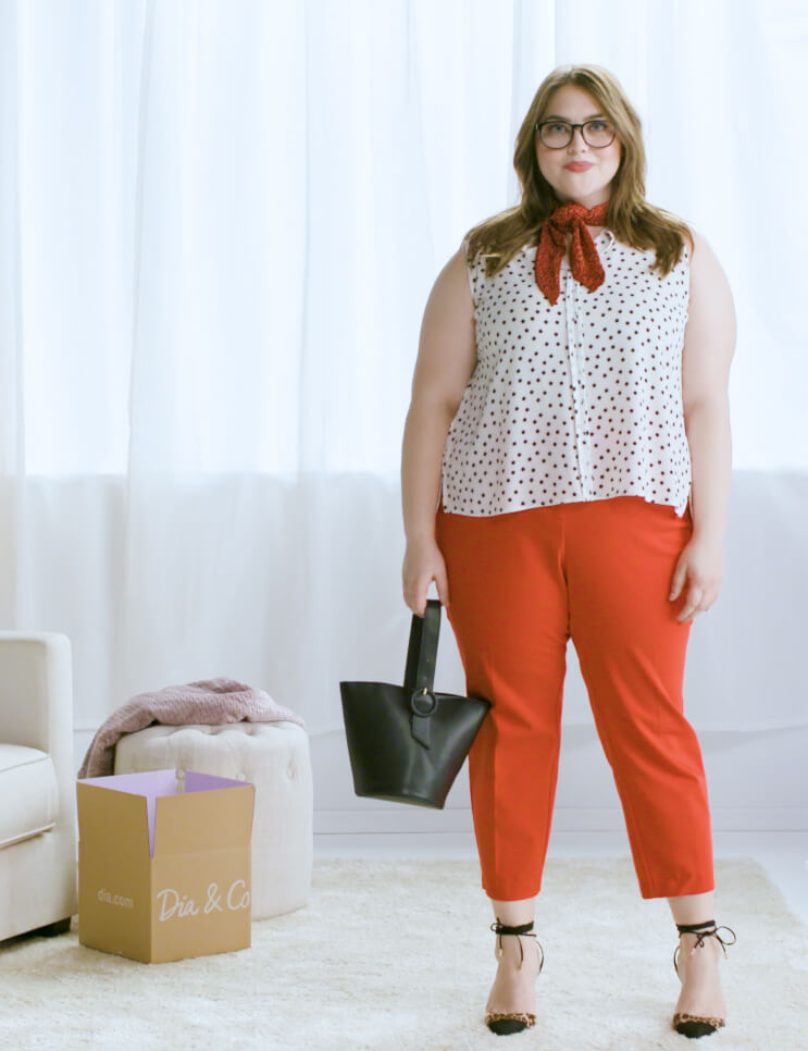Going for Uptown Chic? Opt for a sleeveless blouse in a classic pattern. Now it’s time to get a little more playful. A scarf, bucket tote, and strappy heels will keep things interesting—and make sure your look’s sharp enough for even the poshest settings.