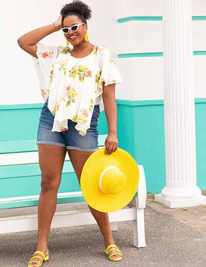 There’s no warm-weather combo comfier than a T-shirt and cut-offs. Make it unique with an unexpected hem—then complete the look with sunny-day favorites.